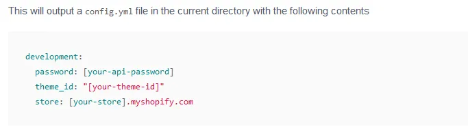 config.ymlwith your theme API details. - Download theme files and watch for local changes.