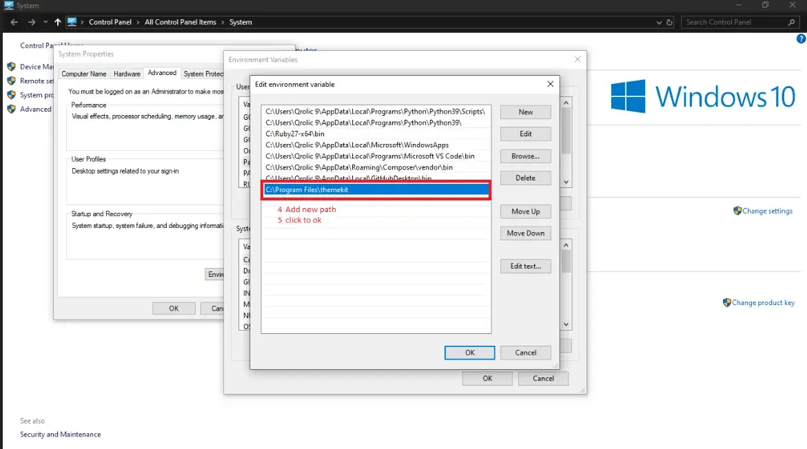 Open Advance System Settings > Environment Variables and double click on the Path variable