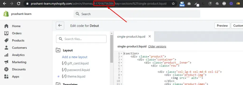 Copy Theme id from URL and paste it in place of [your-theme-id].