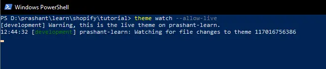 theme watch This command will start a process that will watch your directory for changes and upload them to Shopify.